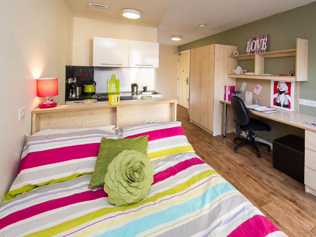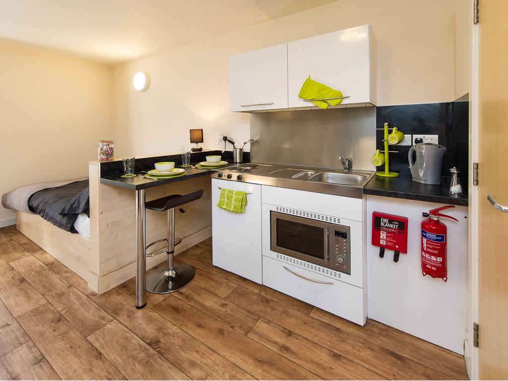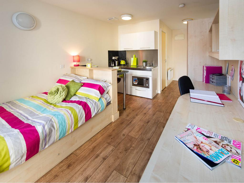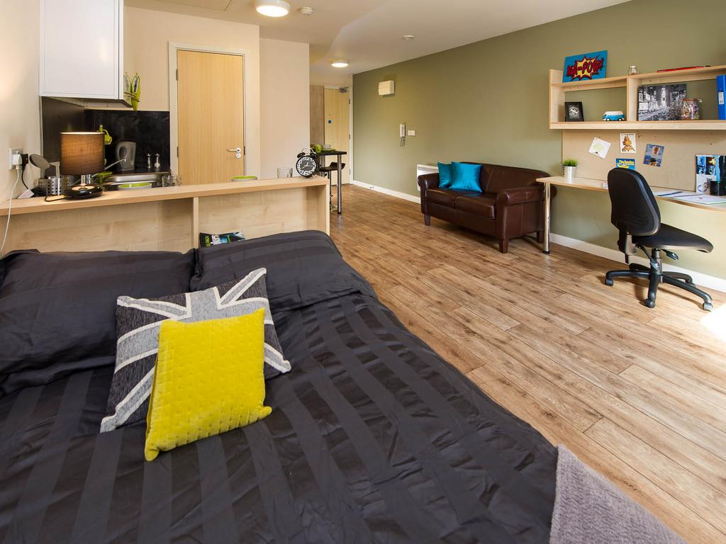 Self-contained studio living starts here for you and perhaps your plus one. If you choose to share the en suite shower room, small double bed, bags of storage, fitted kitchen and study area, there’s no more to pay. Rooms approx. 18sqm
