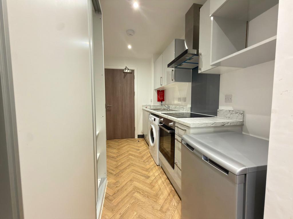The apartment benefits from a Juliet balcony, allowing plenty of natural light to fill the main living space while offering a pleasant outlook. The fitted kitchen is thoughtfully designed with modern appliances, providing a practical and contemporary space for everyday use. A fitted wardrobe adds valuable storage, helping to maintain a clean and uncluttered environment. The property is further enhanced by a sleek, modern bathroom finished to a high standard, complementing the overall contemporary feel.