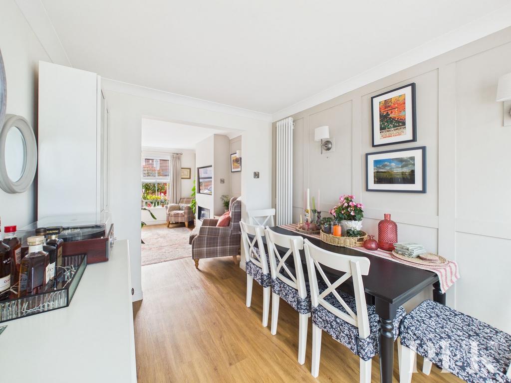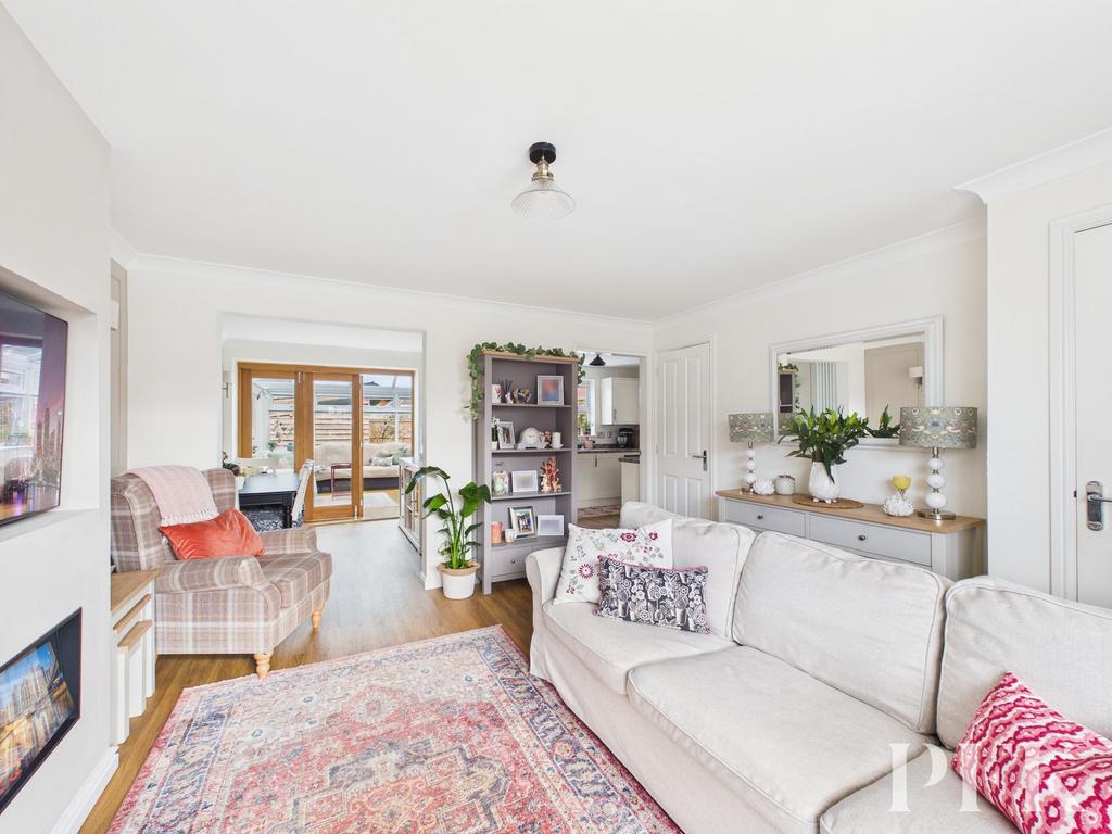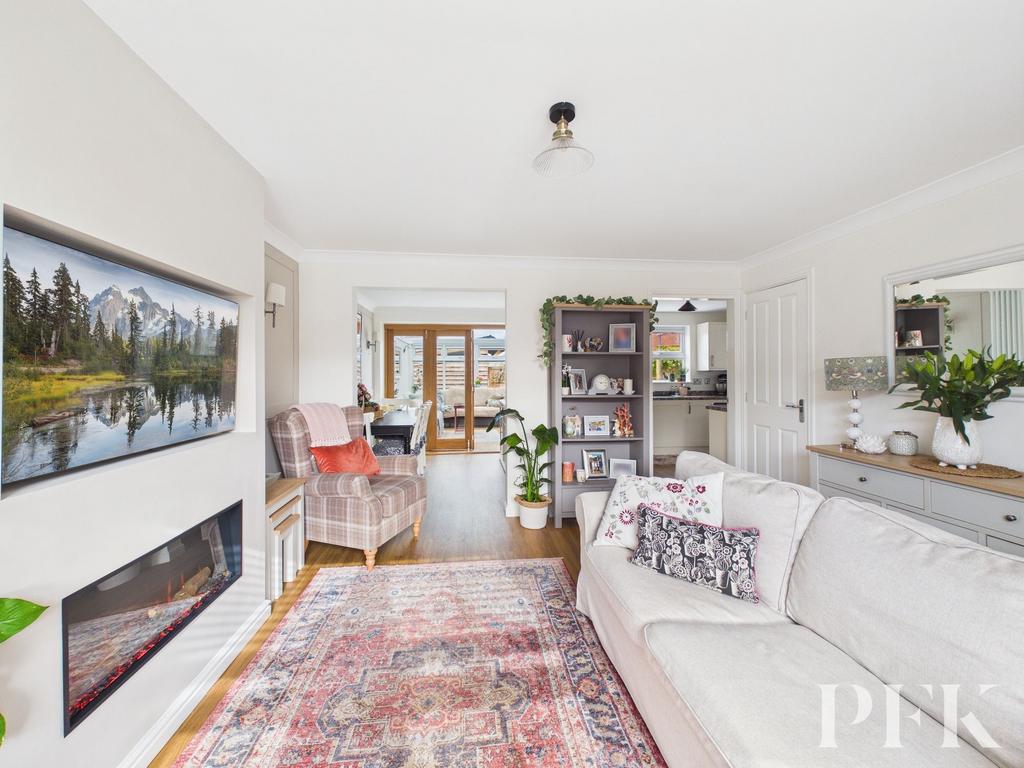 This impressive four bedroom, two bathroom detached house offers a harmonious blend of contemporary style, spacious living and outstanding family friendly features. The property boasts three reception rooms, including an inviting open plan living and dining area enhanced by modern electric fireplace, elegant flooring and abundant natural light streaming through large windows and bi-fold doors. The modern kitchen is fitted with sleek cabinetry, integrated appliances and a practical breakfast/dining bar, all beautifully illuminated by natural light. Adjacent to the kitchen, a utility room provides space for laundry appliances and storage whilst also leading to the ground floor cloakroom/wc.