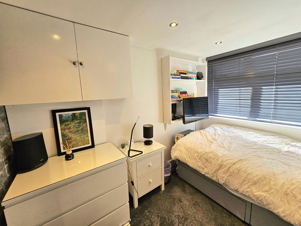 Used as a bedroom and having a front aspect double glazed window and cupboard housing electric mains.