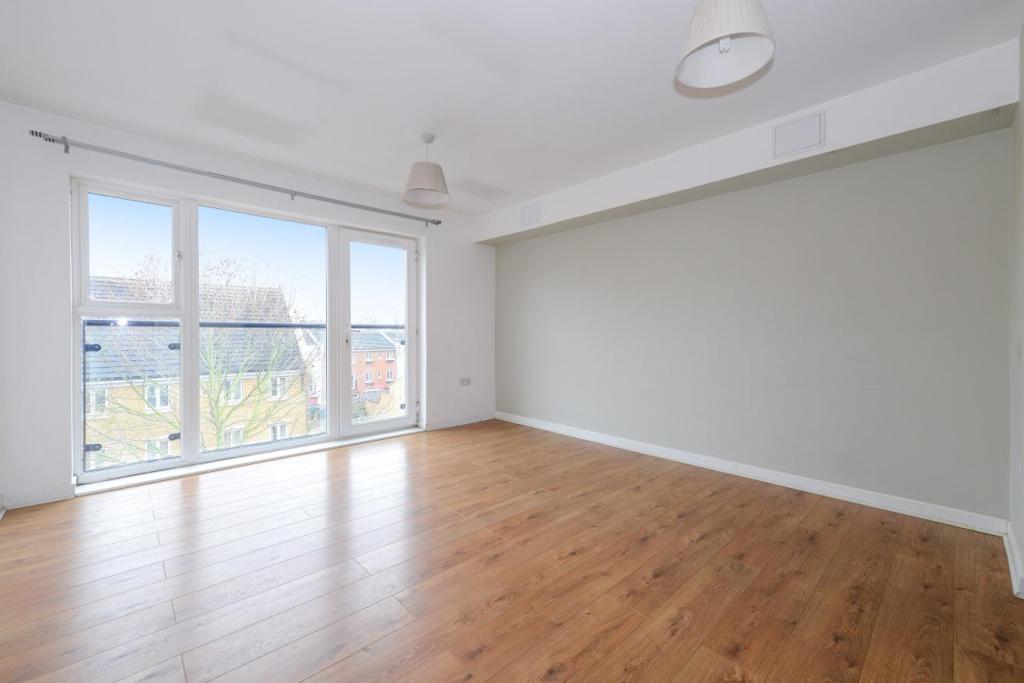 The property features a spacious open‑plan kitchen, living and dining area, enhanced by dual windows that allow natural light to fill the room. The principal bedroom includes built‑in wardrobes and a contemporary en‑suite shower room, while the second bedroom is also a well-sized double. A modern three‑piece bathroom and ample hallway storage complete the internal layout. Residents also benefit from access to well-maintained communal gardens and secure bicycle storage.