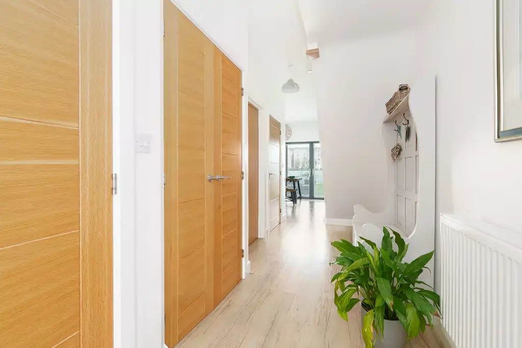 There are four bedrooms, including an impressive principal bedroom with dressing room and an en-suite shower room, along with a luxury family bathroom fitted with both a separate bath and shower.
