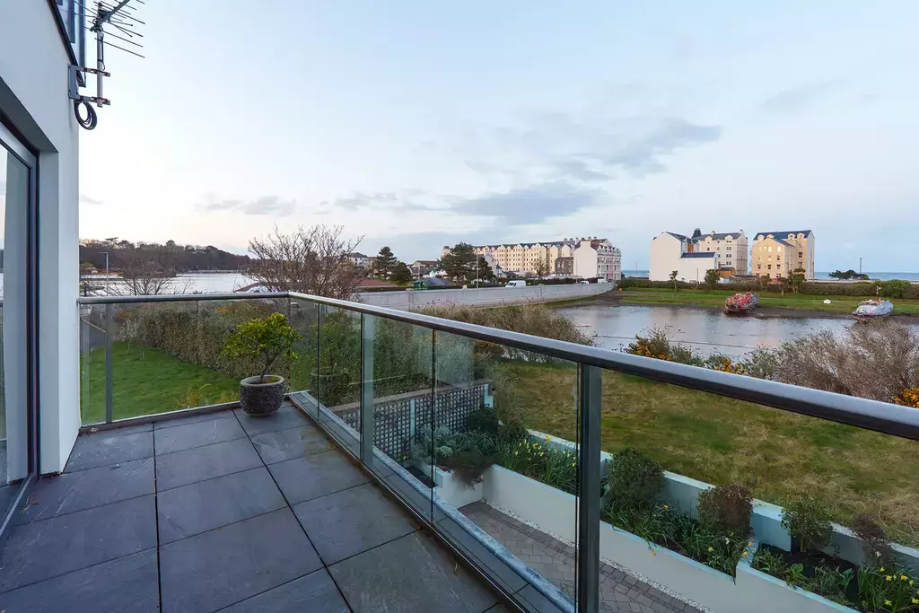 - Lovely first floor living room with a further set of sliding doors to the balcony with amble space for table and chairs, enjoying the fabulous elevated harbour views