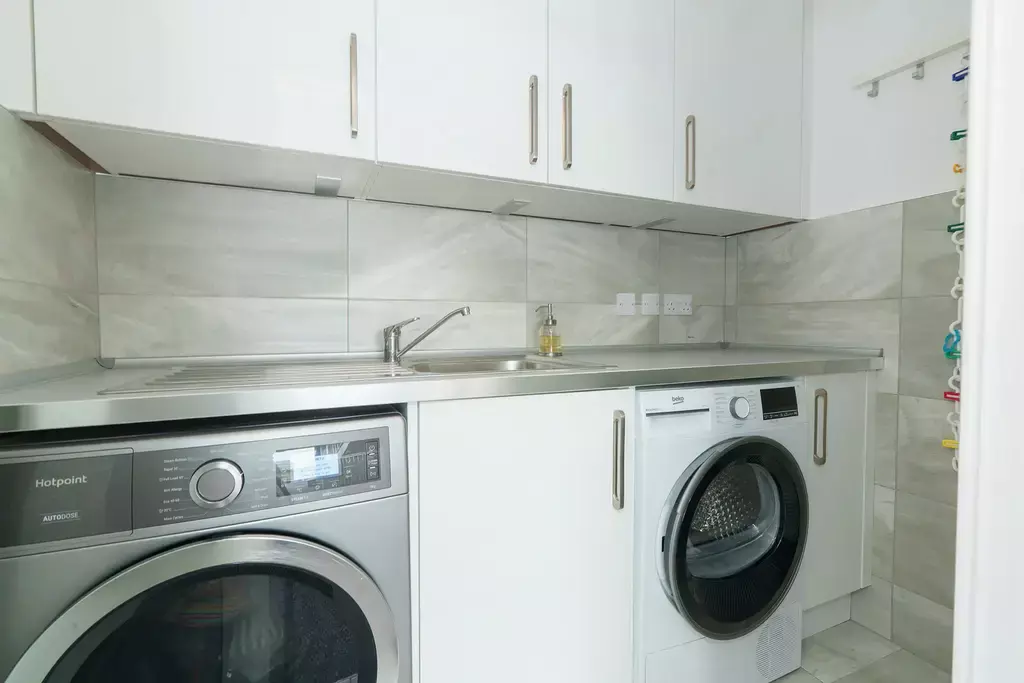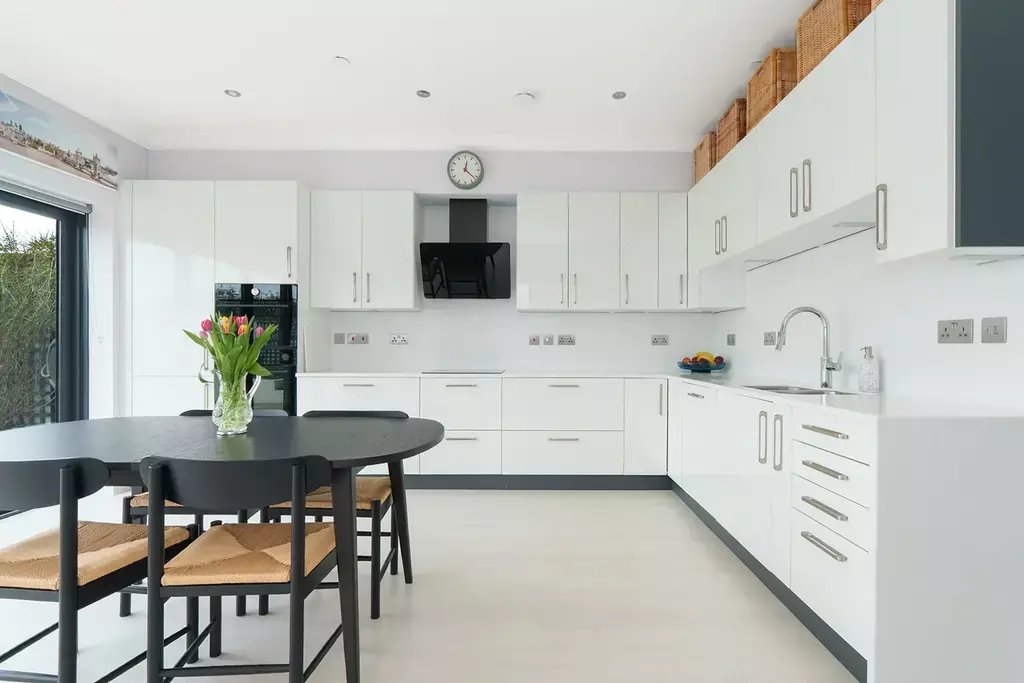 The heart of the home is the stunning open-plan living, dining kitchen, featuring additional units and generous space, creating a superb light-filled environment ideal for modern living and entertaining. Sliding doors open onto the external patio, seamlessly blending indoor and outdoor living.