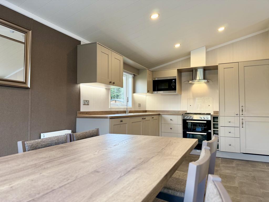 - Step into a bright and inviting interior thoughtfully designed with comfort and convenience in mind. The lodge boasts a spacious open-plan living area flooded with natural light, complemented by contemporary furnishings and meticulously maintained finishes. The fully integrated kitchen comes complete with high-quality appliances—including a washing machine and dishwasher—ensuring daily living is effortless from the moment you arrive. Both bedrooms are elegantly proportioned, providing ample storage and tranquil spaces to unwind, while two sleek, modern bathrooms add a touch of luxury to your everyday routine.