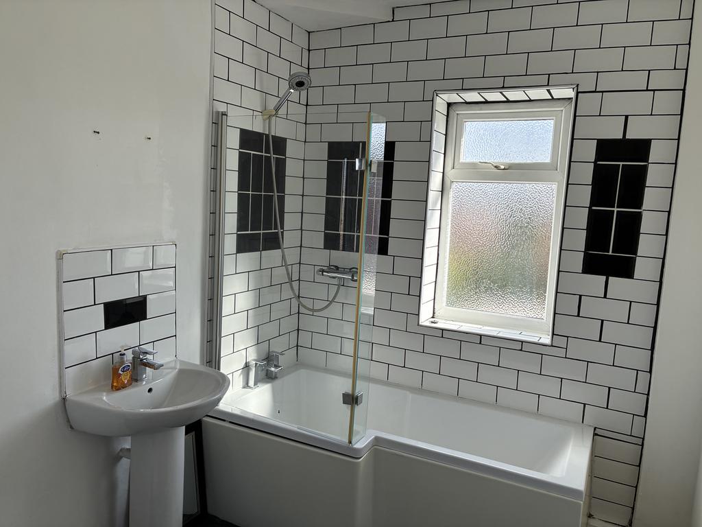 BATHROOM & W.C W.C – low suite, panelled bath with shower over, wash hand basin, part tiled walls, heated chrome style towel rail, two UPVC double glazed windows, loft access.