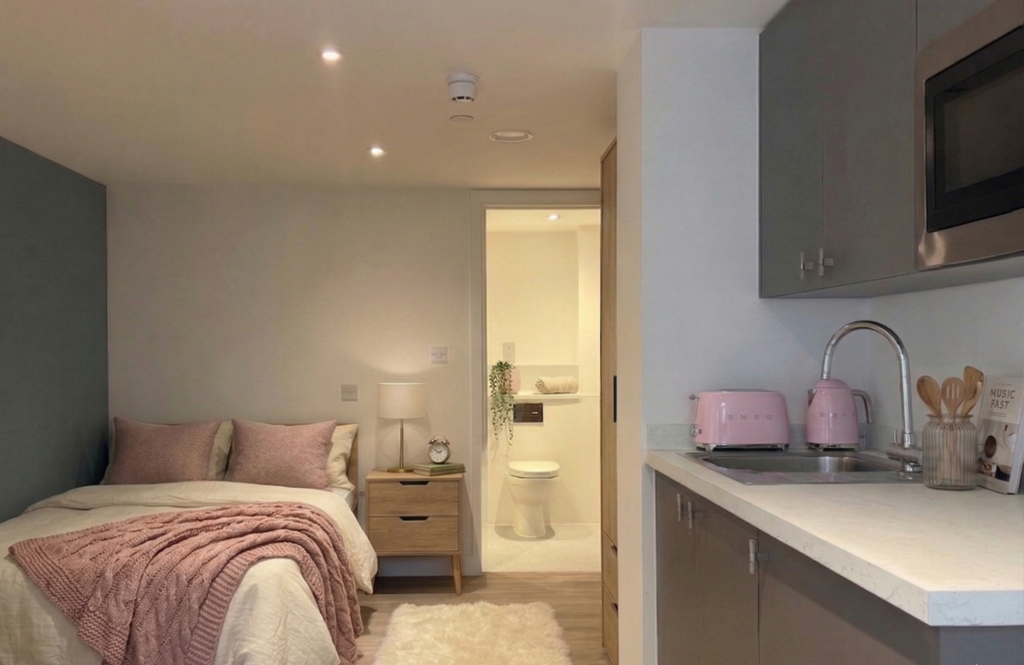 Modern, fully furnished student studios in central Bristol (BS1 4JE), offering hassle-free, all-inclusive living just minutes from transport links, amenities, and city life.