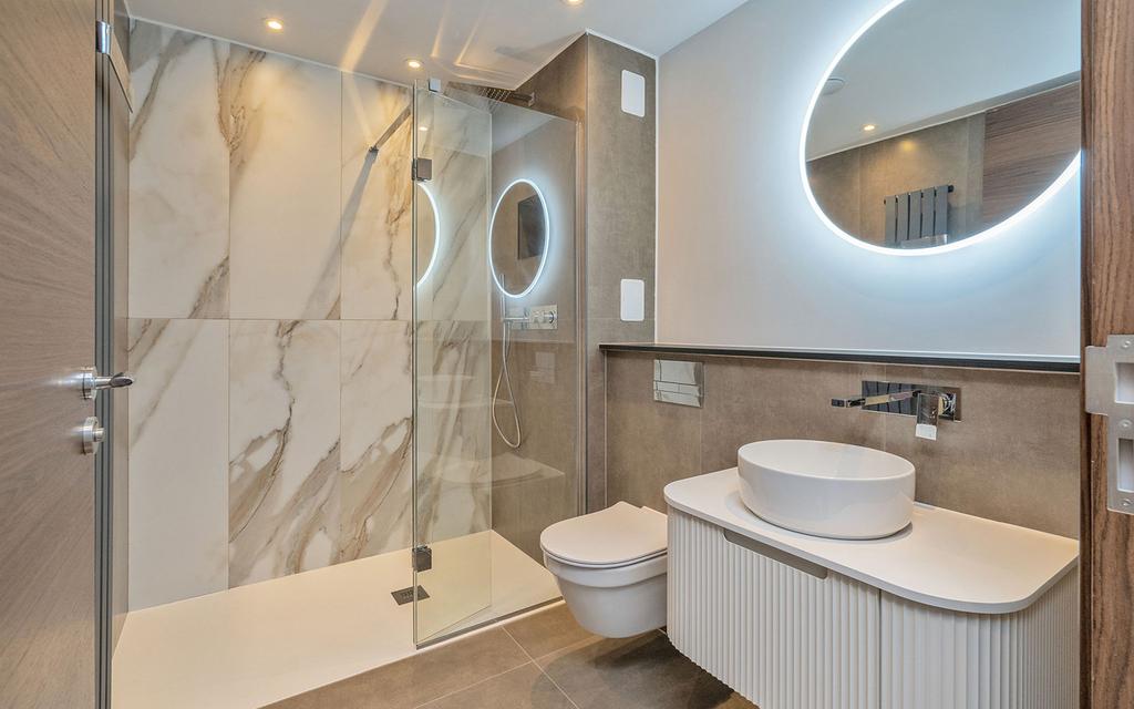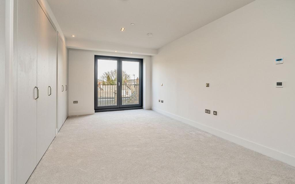 The principal bedroom has a wall of fitted wardrobes and a luxurious en-suite bathroom, with a separate walk in shower and freestanding bath. Bedroom 2 has a fitted wardrobe and an en-suite shower room. Bedroom 3 has a fitted wardrobe. There is a family shower room off the hallway as well as two store cupboards and a utility cupboard with a washing machine and tumble dryer. The apartment benefits from efficient underfloor heating throughout.
