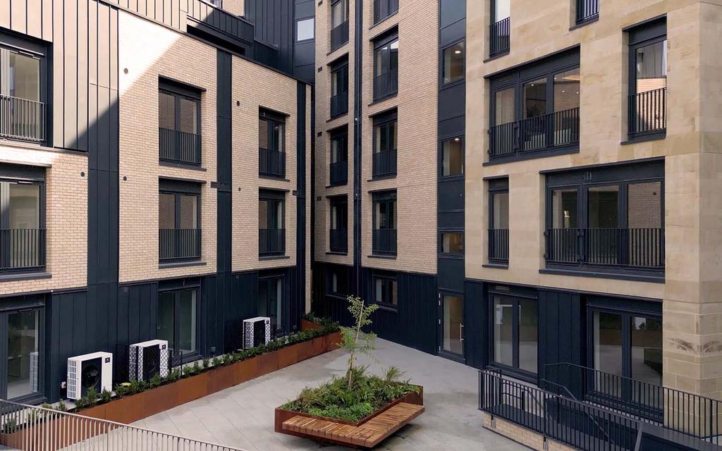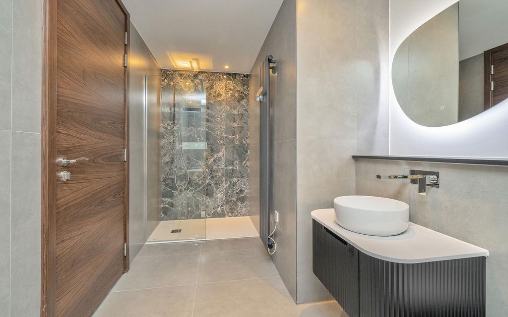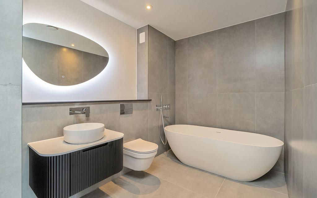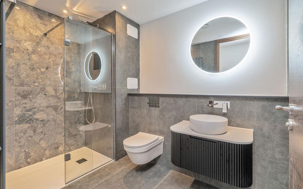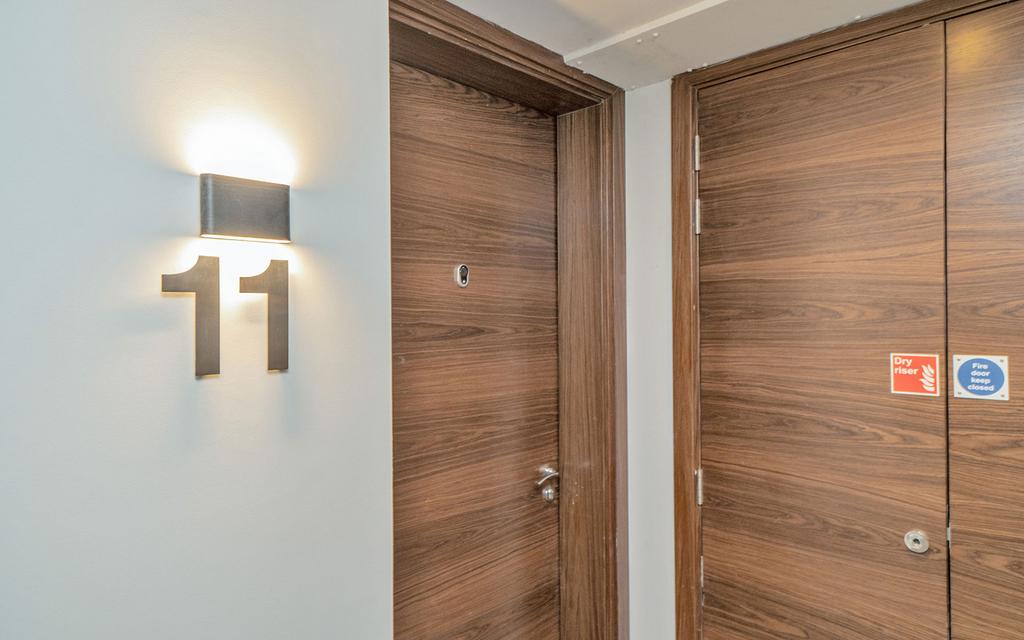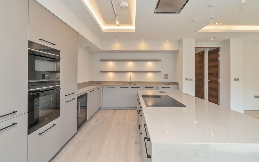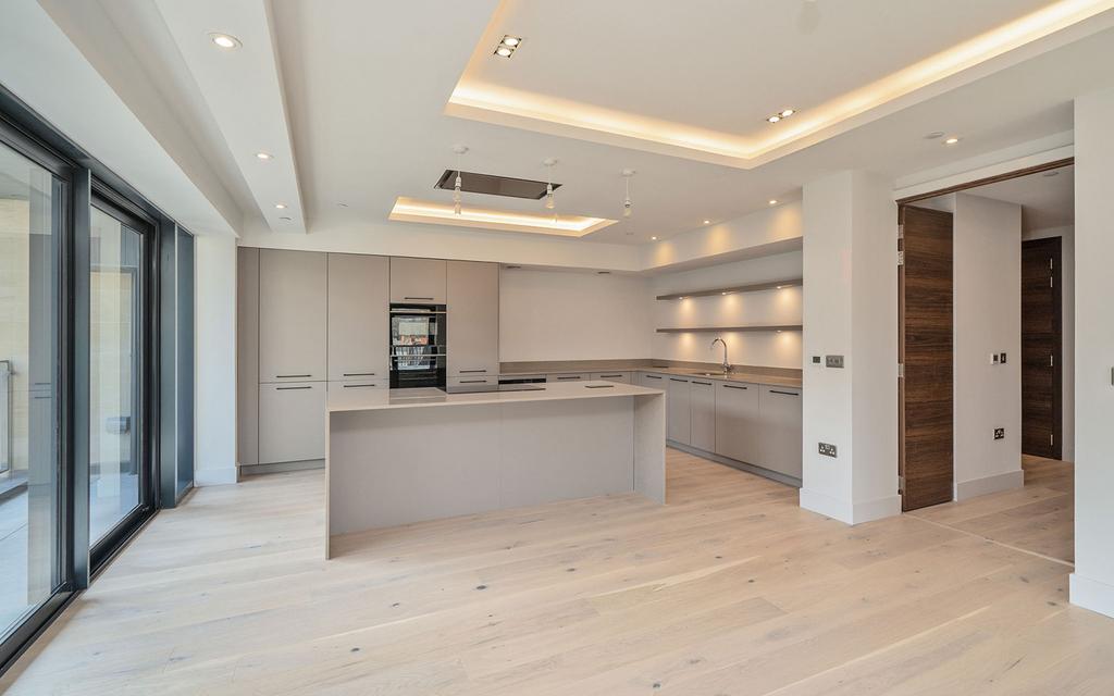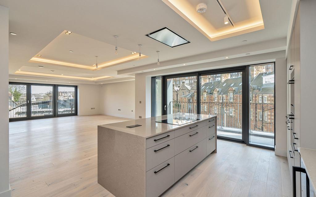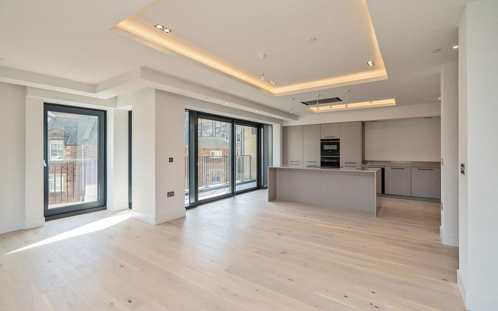 Apartment 11 is a spacious 3-bedroom apartment located on the corner site. The spacious open-plan living room makes full use of the corner location with large east-facing windows and patio doors opening out onto the south-facing balcony. It is zoned for lounging, dining and cooking with coffered ceilings and feature lighting to accentuate these spaces. The kitchen features a range of stylish units and high specification built-in appliances, as well as a large island which doubles as a breakfast bar.
