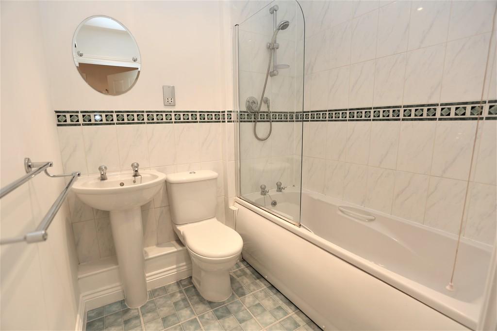 Fitted with a three piece suite in white, part tiled walls and shaver point