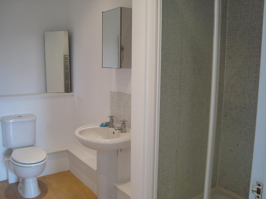 BATHROOM- Bath with shower over, wc, sink and heated towel rail