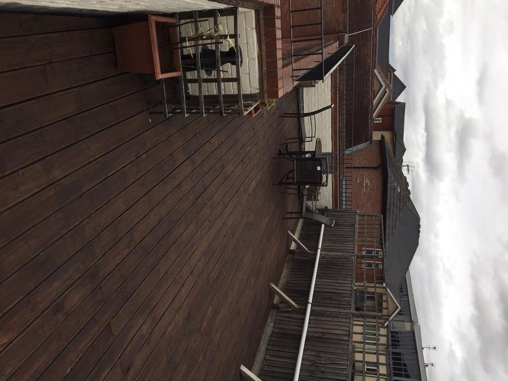 EXTERIOR- Lower decking area leading to large decking area over looking the town. And views of the Abbey, front door onto main high street, great central location, with large living space, pets considered.