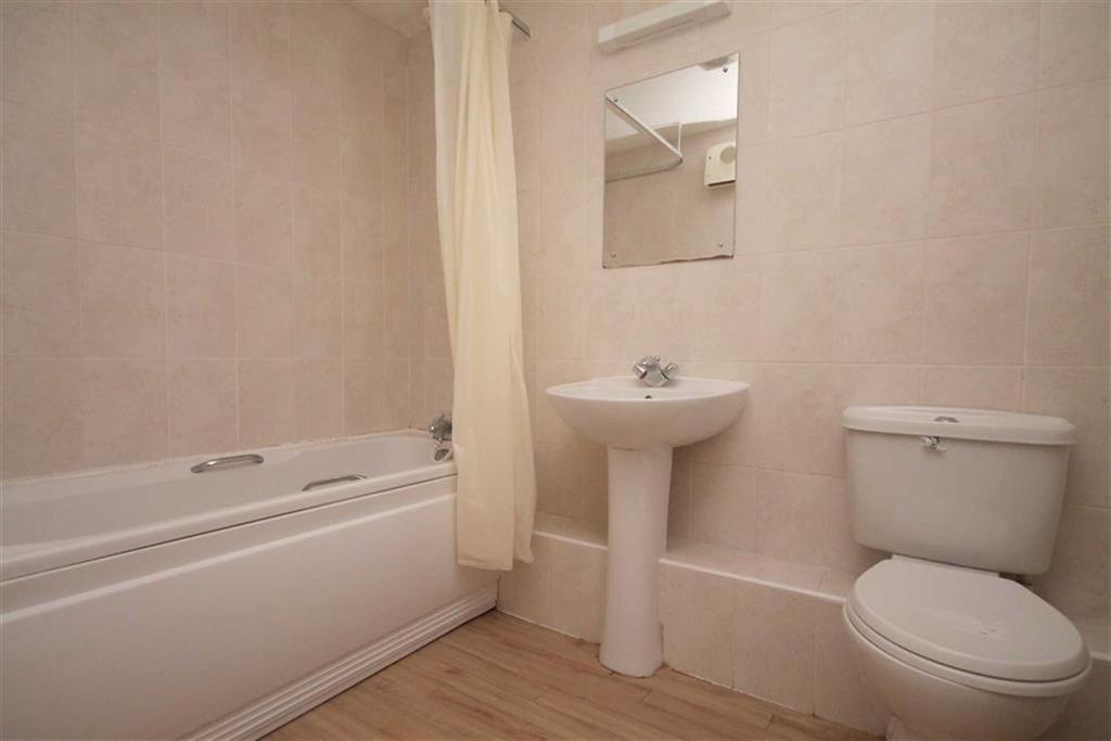 Bathroom/Wc - Fitted with a white suite comprising panel bath with shower attachment, pedestal wash basin, wc, glazed tiled walls, extractor, wall mounted heater, laminate wood effect flooring.