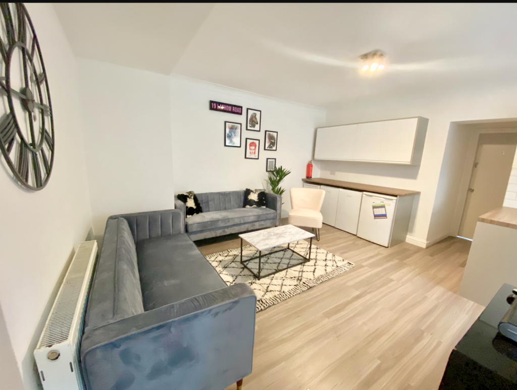 This spacious 6-bedroom semi-detached student house has been recently refurbished and finished in a sleek modern monochrome style with bold artwork and colourful accents. It’s the largest 6-bed semi we offer, with generous bedrooms and a great social layout – perfect for group living.