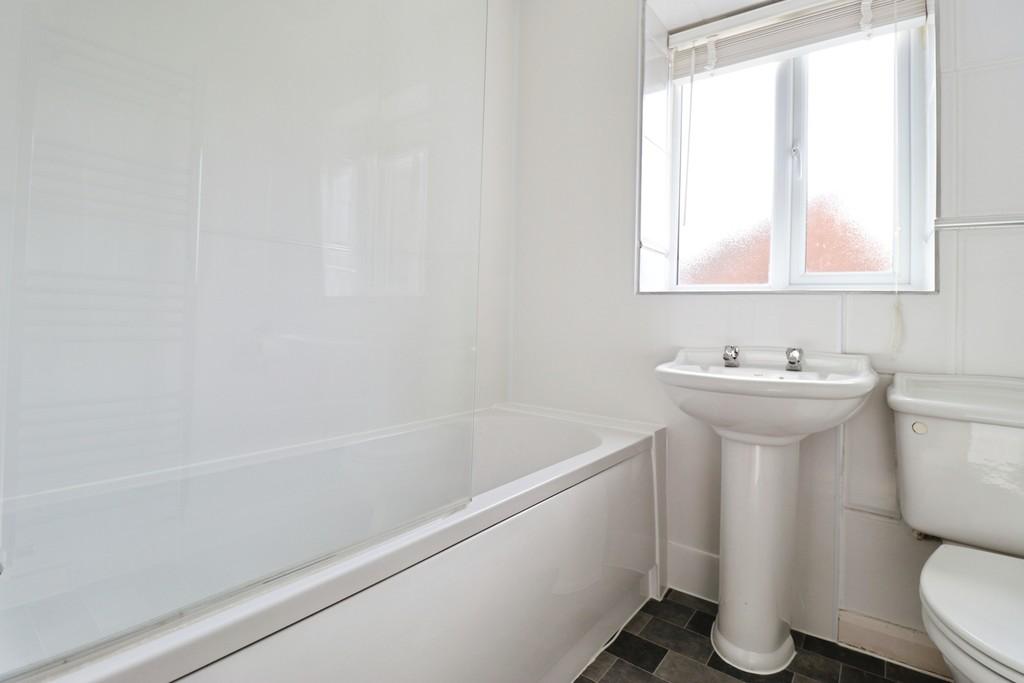 BATHROOM: Three piece suite comprising corner bath with mixer tap and shower over, low level WC and wash basin with pedestal Tiled walls. Double glazed obscured window to side aspect.