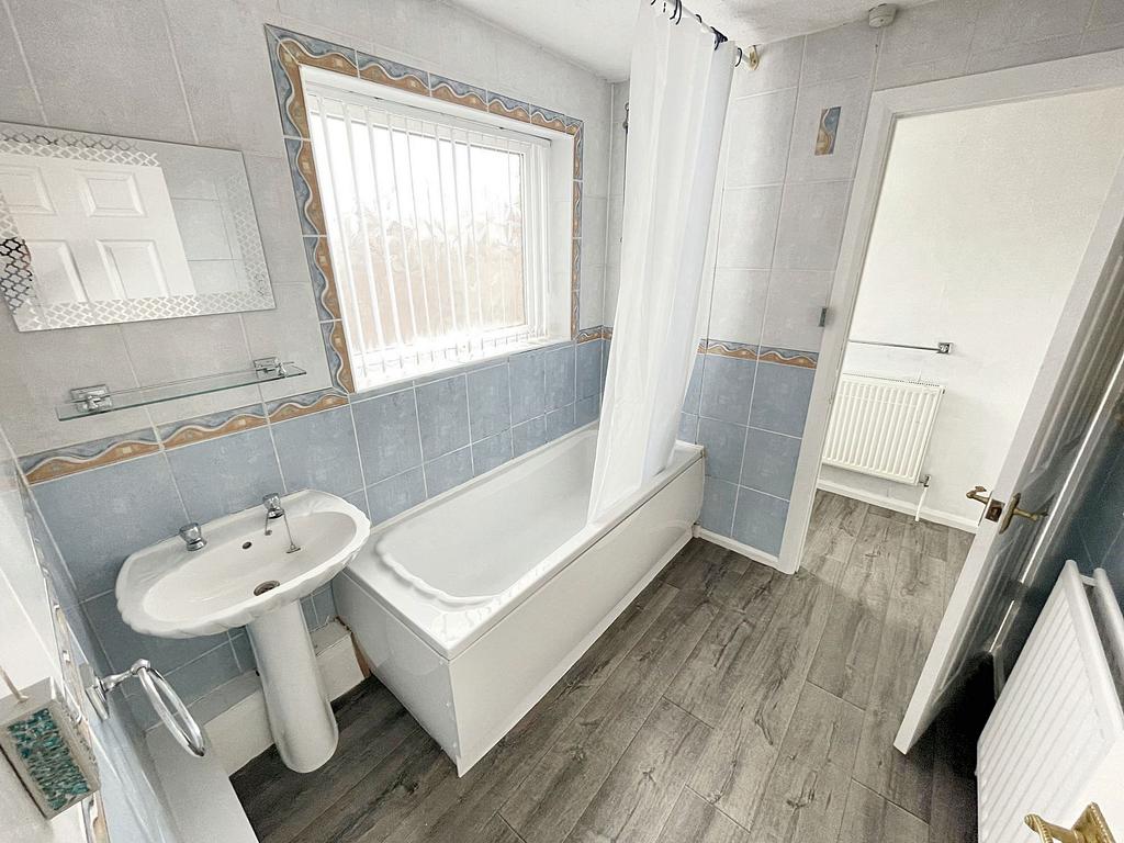 Comprising :- panelled bath and pedestal wash hand basin. Double glazed window to the side and single radiator. Separate w.c.