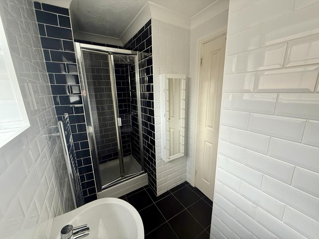 Family bathroom in excellent & modern condition, fully tiled throughout with power shower, WC & basin.