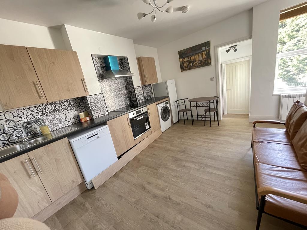 Fitted units with sink, oven hob and extractor fan. Dishwasher, fridge freezer & washing machine.