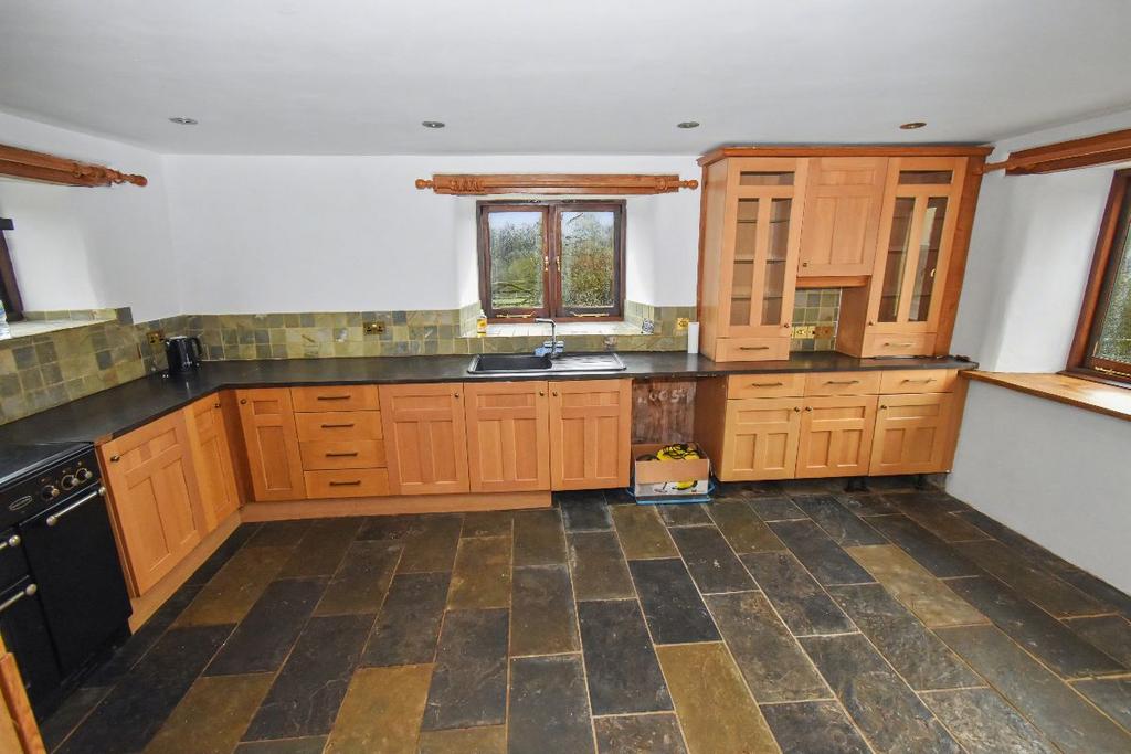 With range of modern matching units comprising base units, drawers and eye level units. Work top surface with tiled surround and inset sink unit. Electric range cooker. Front and rear aspect window. Space for appliances. Tiled floor. Under floor heating.