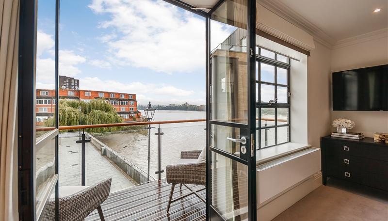 A stunningly spacious, interior designed three bedroom, three bathroom apartment with a balcony and a terrace with river views is available within this newly converted, warehouse style, gated development on the River Thames.