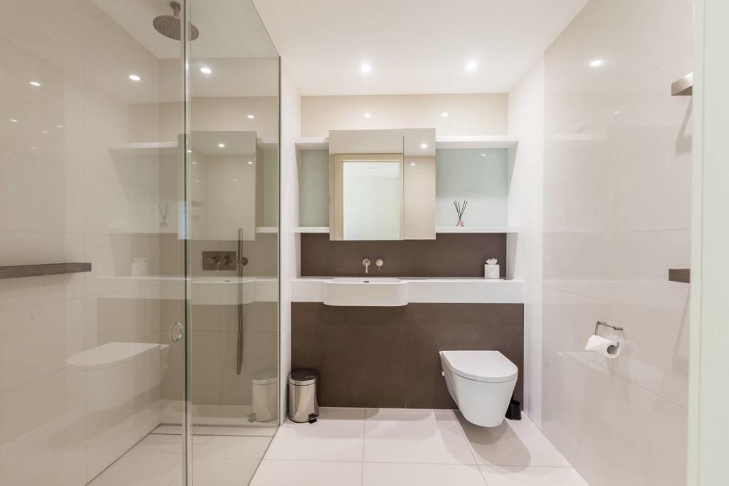 This very spacious and sensational apartment measures 646 sqft and boasts a multitude of benefits, including a fully fitted modern kitchen with integrated appliances. The kitchen is open plan to a large reception room, ideal for entertaining, with windows that stretch from floor to ceiling, maximizing natural daylight and featuring air-conditioning in every room.