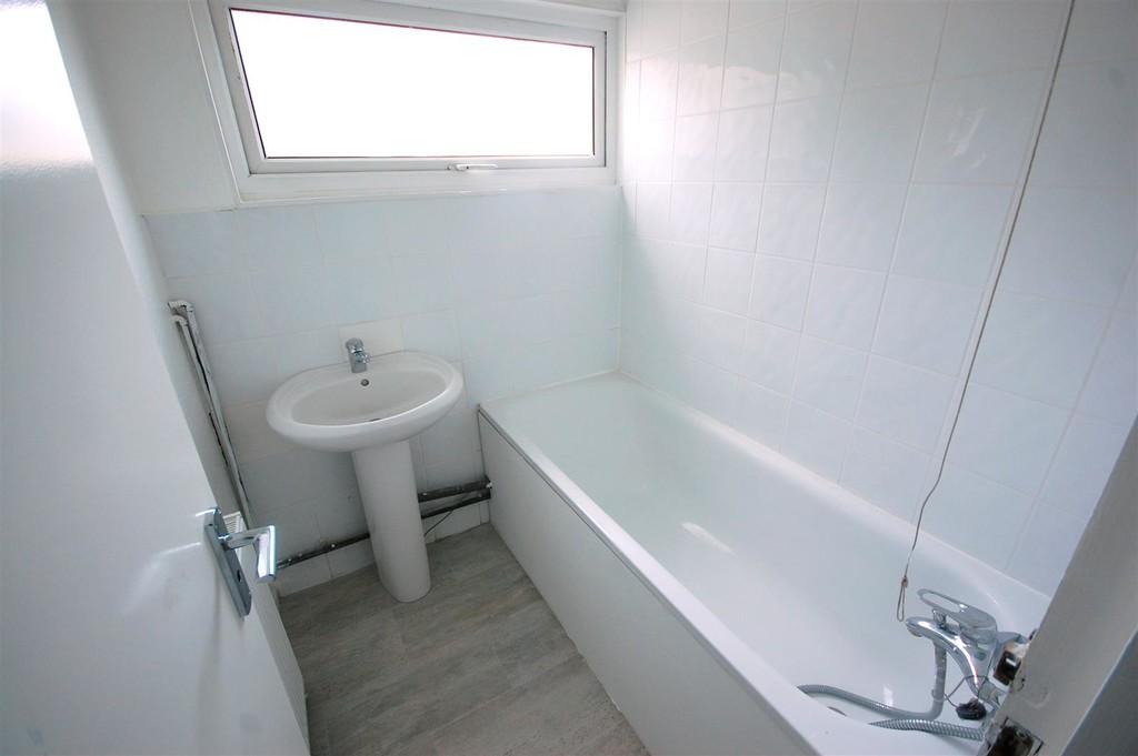 REFITTED BATHROOM Refitted suite comprising of; panel enclosed bath with mixer tap, shower attachment and complimentary tiled surround, pedestal wash hand basin with mixer tap and tiled splash back, radiator, double glazed window to front
