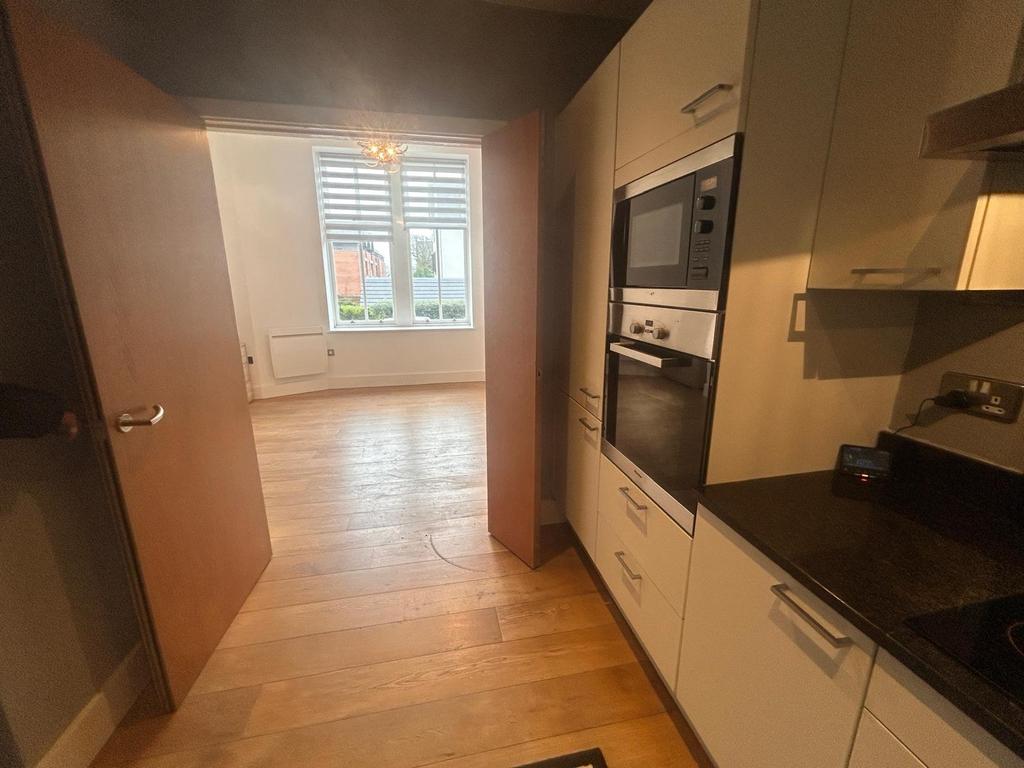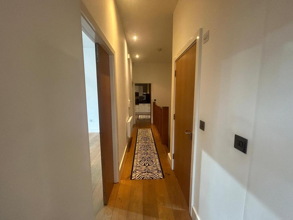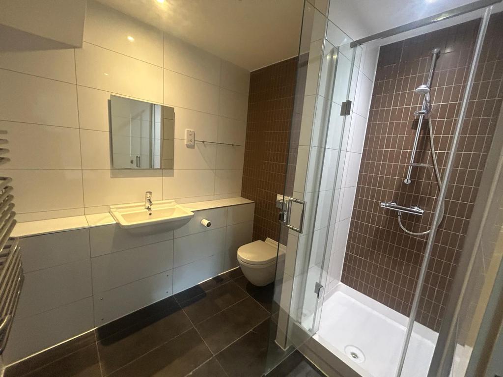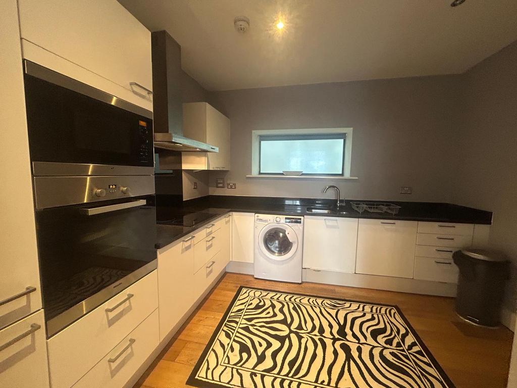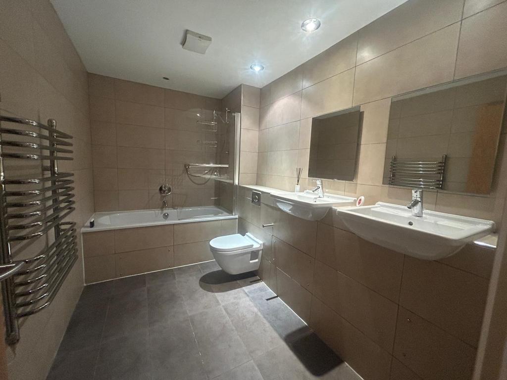 Ideal for sharers or a couple seeking flexible living, the apartment offers two generous double bedrooms, including a principal suite with stylish walk-in wardrobe and elegant en-suite shower room with striking tiling and chrome fittings. The contemporary family bathroom provides ample space with twin basins and a full-sized bath – perfect for relaxing at the end of the day.