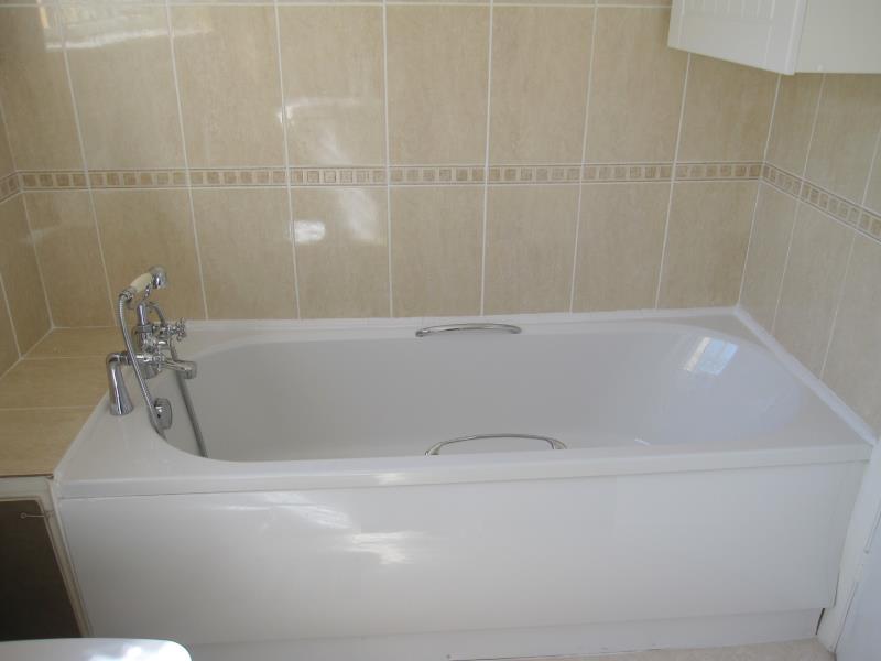 Fitted with range of wall and base units, sink and drainer incorporated into work surface with tiled surrounds, electric cooker, space and plumbing for washing machine. There is a window to the rear and a door into the Garden Room/Conservatory.