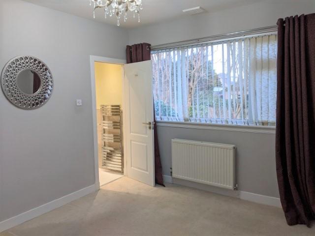 Located on one level, the property offers easy access for a family or professional couple. Bright hallway with dining area. There?s a large lounge with feature fireplace. The modern kitchen is to the rear of the property and features all the usual appliances including a fridge, double oven, gas hob and a dishwasher. The washing machine and tumble dryer are housed in the garage. The property benefits from three double bedrooms each with fitted wardrobes. The master bedroom features an en-suite shower room. There?s a further family bathroom with overhead shower. Outside there's a sunny and easily maintained mature garden to the rear with plenty of outside storage. The garage offers ample storage space and the driveway offers off street parking for up to three cars. The property benefits from Gas Central Heating and double glazing. Viewing of this property is highly recommended to appreciate the space it offers for a family or professional couple. Available 22nd October. EPC rating: D. Landlord Registration Number: 1034494/100/30041.