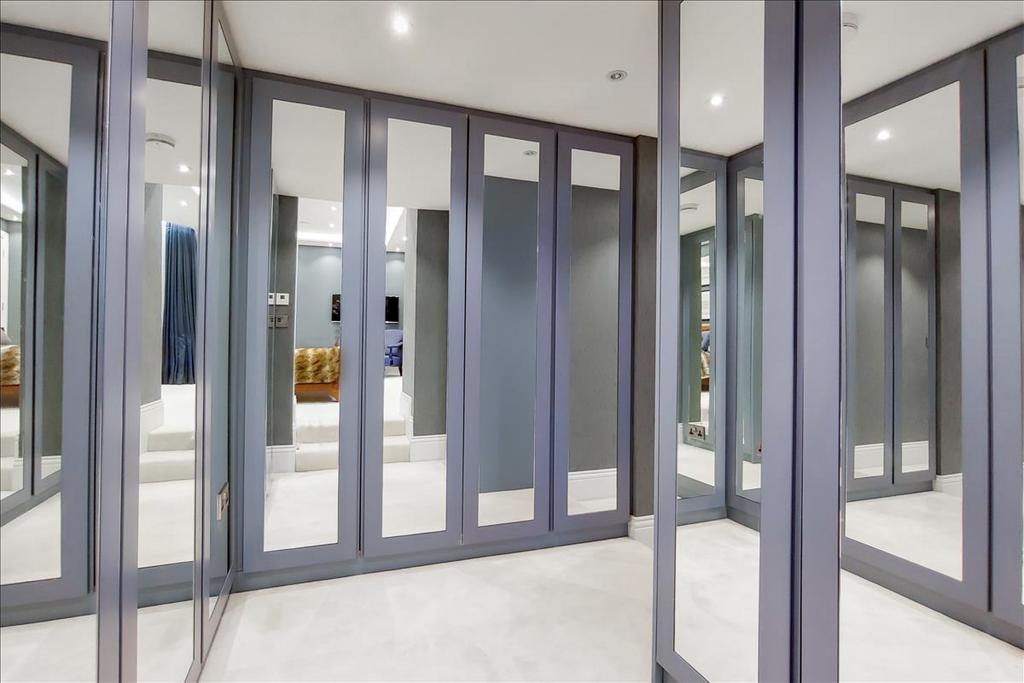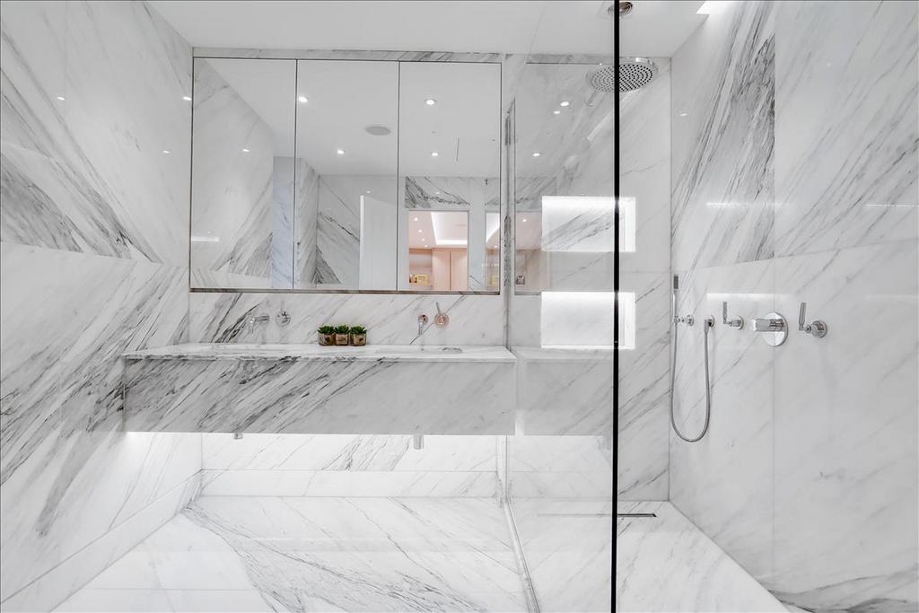 The flat has been developed to an exacting standard, offering luxury worthy of its location: the living space is fitted with wide-plank, light wood flooring; the bathrooms are clad in huge panels of marble; and the technical specifications include Crestron lighting and a full audio-visual system throughout. Internally, the property comprises: three substantial bedrooms, all en-suite, with superb integrated storage; an expansive kitchen with Miele fittings; and the vast reception room.