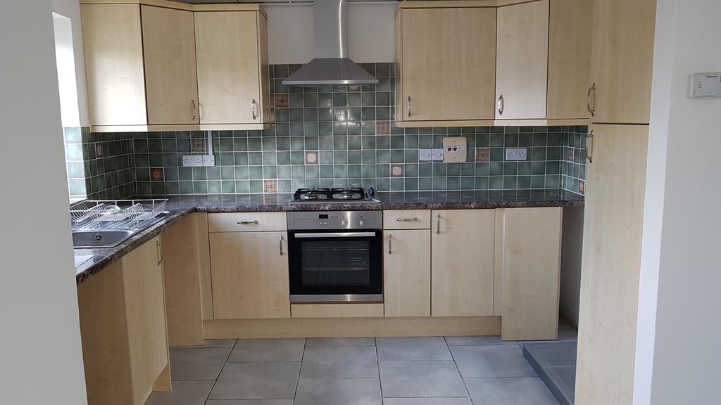 Window and uPVC d/g door to front aspect. Fitted with a range of wall and base units with work surfaces over and inset sink unit. Built in electric oven and gas hob with extractor hood over. Plumbing for automatic washing machine. Fully Tiled floor, Cupboard housing electric meter. Fuse box, Double panel radiator, and wall mounted boiler.