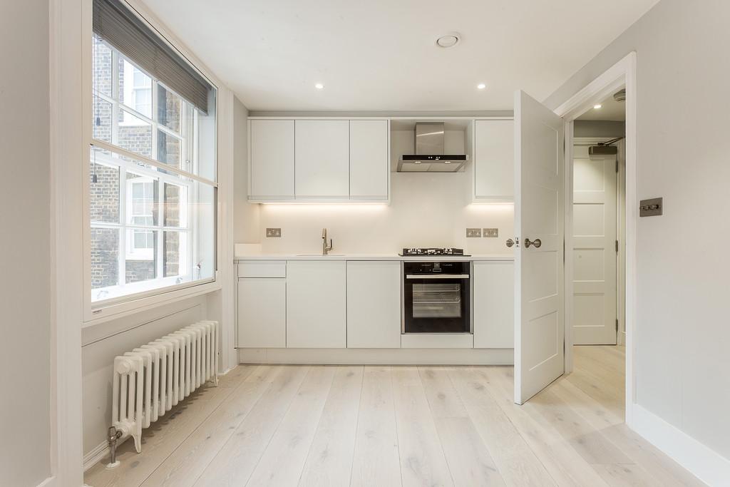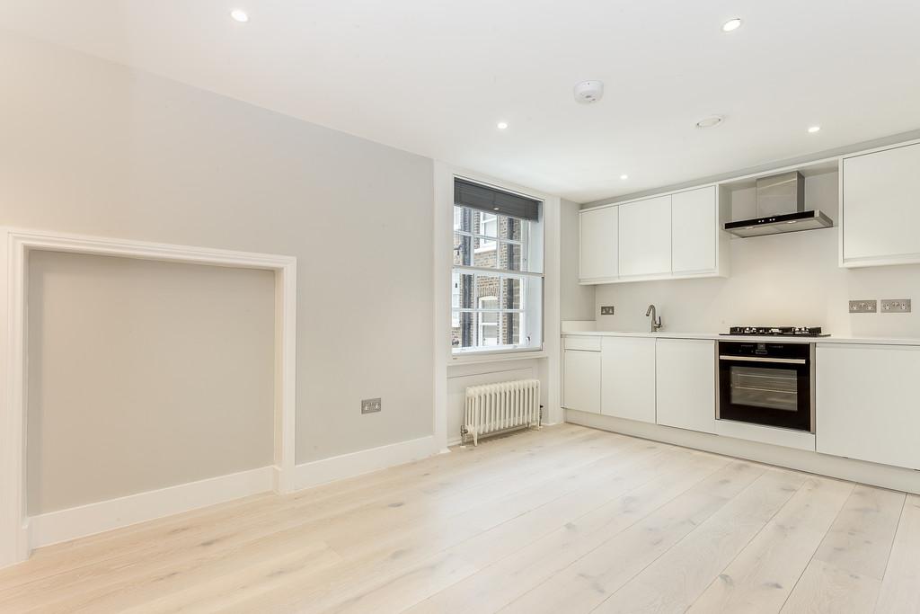 Enviably positioned in the heart of Carnaby and a short walk from the foodie paradise of Kingly Court, this one-bedroom apartment has been finished to a high specification throughout. Calming grey wall tones are matched with wide-planked wooden floors, a contemporary shower room with white square tiles and a stylish matt white kitchen. The entrance to the duplex is on the second floor, walk-up, and leads into the open-plan living and kitchen space. Internal stairs lead up to the bedroom on the third floor which features vaulted ceilings, an ensuite shower room and useful storage. Secondary glazing is fitted for tenant comfort.