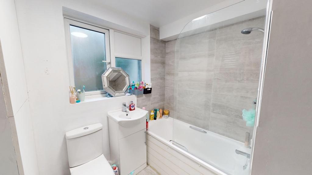 The property it self does have a very large private garden, which is a low maintenance patio garden which is perfect if you don’t have much time for gardening. The garden is accessed through the double patio doors in the kitchen. There is a large open plan living room and kitchen space which provides a bit of storage and worktop space and the living space is also a good size with sofas and room for a table and chairs as well. The first of the four bedrooms is also on the ground floor with this being on your right hand side as you enter. This is a good sized double and a very good sized room. The bathroom is at the end of the hallway and provides a bath with overhead shower attachment.