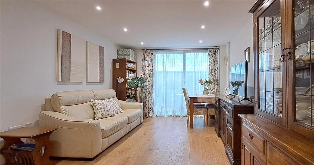 Double glazed doors leading to patio area, electric heater, open plan to Kitchen.