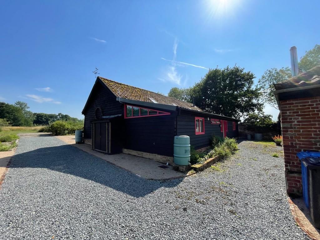 A five-bar gate opens on to the long gravelled driveway, with the farmhouse sitting directly in front of you. A large pond sits by the double garage, brick stable building and timber-clad garden store, with direct access to the land and barn. A traditional Suffolk moat is found to the side of the house and has been used as a 'natural swimming pool'. The house and its attractive gardens occupy roughly a third of the plot, which is also home to a greenhouse, vegetable plot, fruit cage and orchard. Behind the house is a courtyard, with impressive views over the fields beyond. From here, access to an external boiler room and storeroom with outside showers can be found. Separate gated access to the barn and the 3 acre meadow can be obtained from the lane with plenty of hard standing parking with an EV charging point.