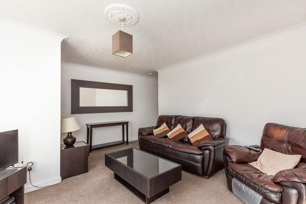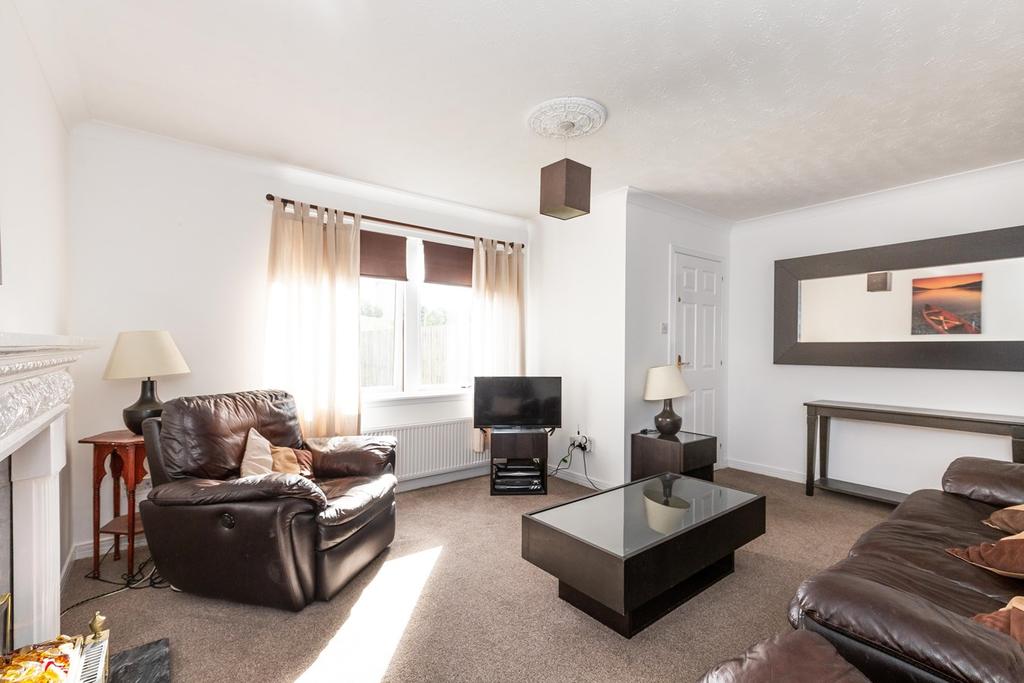 Well-presented and bright, three bedroom, modern end-terrace villa with with private gardens. Set in a modern residential area of Summerston, north-west of Glasgow city centre. The entrance vestibule opens directly into the bright and spacious living room afforded plenty of natural light from a front aspect window. In addition, the lounge offers an impressive feature fireplace, ceiling rose and ample space for freestanding living furniture. Generously sized and with a door to the private rear garden, the dining kitchen has traditional fitted units with stone-effect worktops, tiled upstand, and a composite sink set below a window. Appliances include a freestanding electric cooker, and plenty of space for further whitegoods. Upstairs, bedroom one has a rear aspect window and offers carpeted flooring, a pendant light fitting, and convenient storage provision with a built-in wardrobe. Bedroom two is similarly sized and set to the front with wood-effect flooring, and ample space for freestanding and storage furniture, whilst bedroom three offers a flexible space that can be used as a study or guestroom. Completing the accommodation and set to the rear, the fully tiled shower room has a contemporary two-piece suite with a separate shower cubicle, towel rail, and a frosted window.