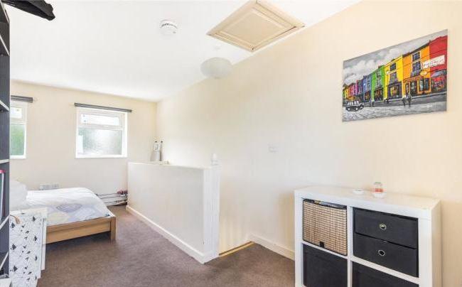 With ample parking to the front of the property, a gated fence surrounds the plot. The gate leads through into the garden which is a great sized corner plot in need of some green-fingered attention! There was previously planning permission granted for a garage to be built with access from Bradley Road this has lapsed but may be reinstated subject to application. A side door leads into the kitchen/living area which is seperated by a shower room. There is a room to the front that is currently a bedroom, but could serve as a study or lounge. Upstairs there is a large bedroom with ensuite shower room. The property would very much suit a professional couple or single.