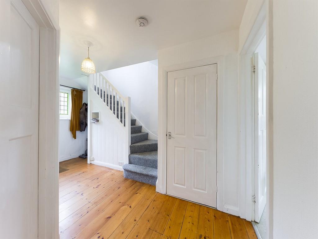 RECEPTION HALL with window to front, understairs cupboard with meters and electric consumer unit, radiator, stairs to first floor, exposed timber floorboards, doors to