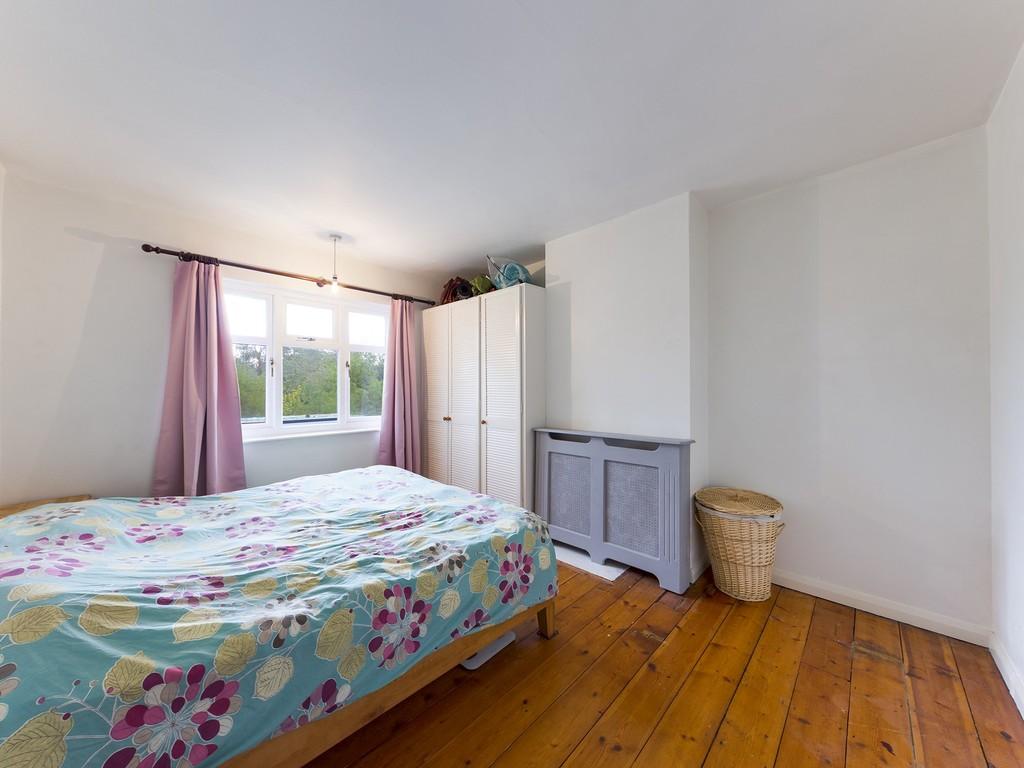BEDROOM 1 12' 10" x 10' 11" max (3.91m x 3.33m) with window to rear, built in wardrobes to part of one wall, radiator behind lattice fronted box cover, pine floorboards.