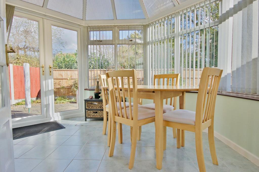 12' 9" x 13' 8" (3.89m x 4.17m) Electric fire with decorative surround. French doors with access to conservatory. Double glazed window through to conservatory. Ceiling, wall light points and radiator.