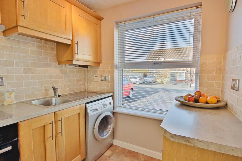6' 8" x 8' 9" (2.03m x 2.67m) Modern fitted kitchen with matching base and wall units and integrated, separate fridge and freezer units. Chrome sink and drainer. Electric oven with four circle gas hob and recess for washing machine. Triple glazed window with view of front aspect. Tiled splashback and ceiling light point.