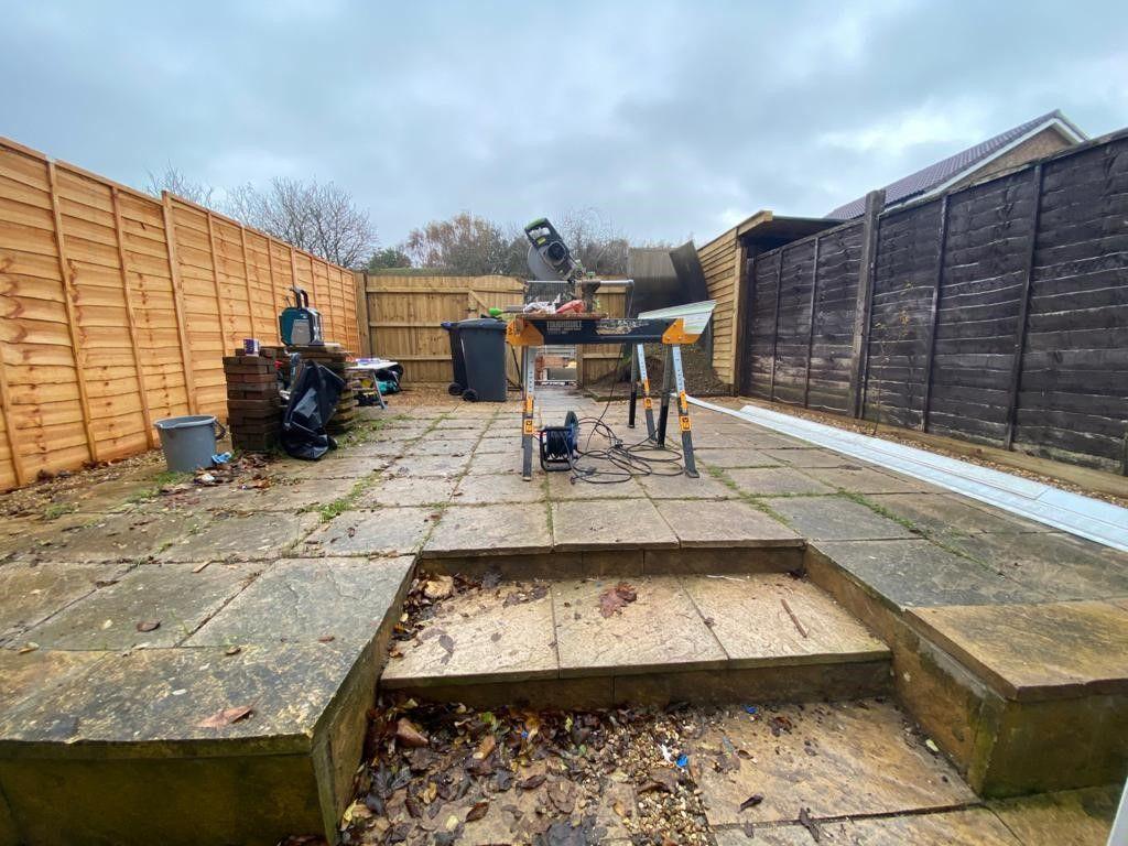 Patio area from front to rear. Gravelled borders. Panelled fence surround. Gated rear access.