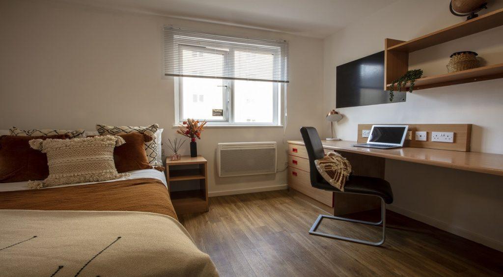 Firhill Court is our perfectly located student accommodation in Glasgow only a short walking distance from the city centre keeping you nice and close to all the action! The best news is, The University of Glasgow and college campuses are short stroll away with a free shuttle bus to make your life even easier, how nice are we!?Featuring a brand-new common room for September 2020, take your pick from a number of fabulous cluster flats with 4 to 6 en suite bedrooms. Each room has a big comfy bed, a study area and plenty of storage for all your bits and bobs.Each flat has a fully equipped kitchen with appliances and a breakfast bar and stools, so you can rustle up some nosh and impress your pals in no time! After a long day of lectures, you can unwind on the leather sofas whilst catching up on some telly or have a natter with your roommates. Want to surf the web? We’re giving you 100Mbps of WIFI throughout the building too, what a bonus!Firhill Court also offers parking and secure bike storage with a handy free shuttle bus for students travelling to Glasgow Caledonian University, The University of Glasgow, Strathclyde University, Glasgow School of Art and Glasgow City College.Our friendly on-site team are available to help you with any questions big or small, don’t worry, they won’t bite! The building is also monitored by CCTV and a secure key fob system is in place to ensure maximum safety for all students.Energy Performance Certificate: Click HereLandlord Registration Number: 463621/260/07491If you're looking for short term accommodation or summer stays, we have options for these too!Tell your friends! We have fantastic and modern student accommodation across the UK, including London, Manchester, Liverpool, Sheffield, Edinburgh, Nottingham, Southampton and more.