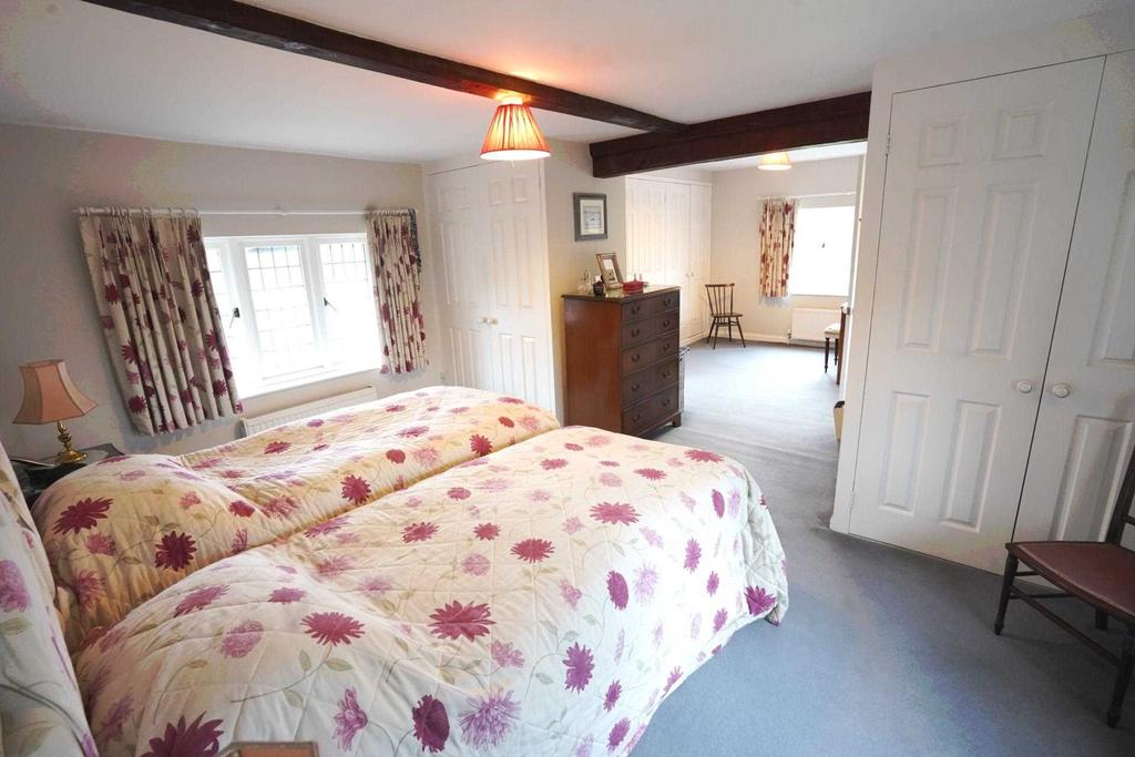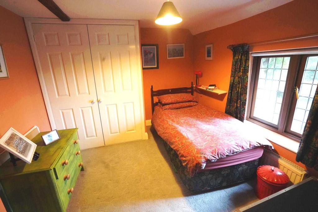 14' x 9'3 (4.27m x 2.82m). Double glazed window looking west over the garden. Exposed chimney brickwork. Double radiator. Double wardrobe cupboard. Fitted shelves. Exposed ceiling beam.