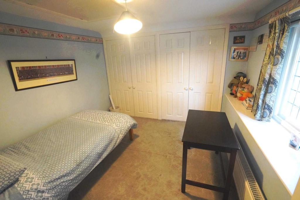 10' x 10' (3.05m x 3.05m). Double glazed casement window. 2 Double wardrobe cupboards. Further eaves cupboard. Hatch to insulated roof space with loft ladder. Double radiator.