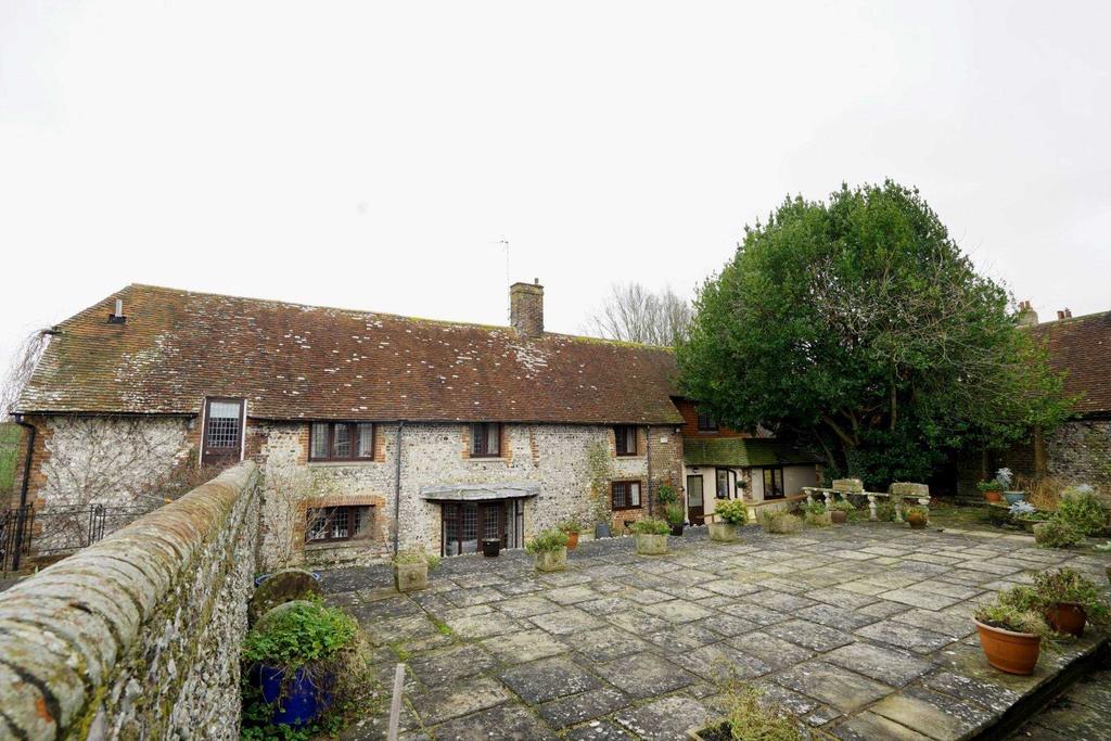 Charles Wycherley Independent Estate Agents are delighted to announce the new marketing of Cobbe Place Cottage. This Grade II listed property has been in the same ownership for approximately 40 years as a much loved and extended family home, but also has huge potential for a separate annex or holiday lets, with conversion of a barn property, all subject to planning permission. The property has a southerly extension, creating a surprisingly large house with 5 bedrooms, 3 bathrooms and a separate w.c. The ground floor has 4 good size reception rooms as well as a kitchen/breakfast room, cloakroom, utility room and boiler room. There is an attractive front entrance area with lawn which wraps around the property to the east. There is also a 2-level paved patio and pond. There is an outside studio, open double car port and a flint single storey building with the potential for converting into holiday lets or plans for conversion to a 3 bedroom annex with a private garden (subject to planning permission). There is a separate 1.7 acre paddock and a further field adjoining (rented on a peppercorn rent), leading to Beddingham Church.