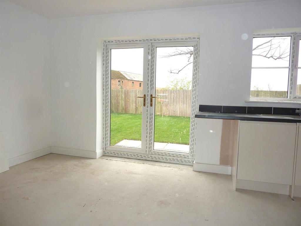 Dining Kitchen - The kitchen area includes an attractive range of cream fitted units with contrasting black granite style laminate work surfaces and one and a half bowl single drainer stainless steel sink unit with mixer tap. Built in cooking facilities include an electric hob with cooker hood above and electric oven. Integrated fridge freezer and dishwasher. uPVC double glazed window to the rear. DINING AREA having space for appropriate dining furniture, central heating radiator and uPVC double glazed double french doors leading out to the rear garden.