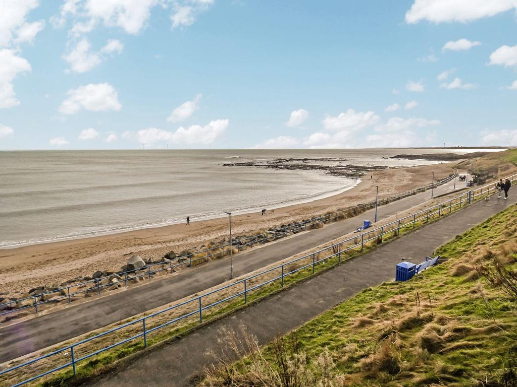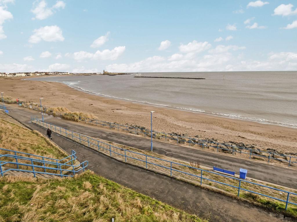 To the rear walled yard with up and over door for access. To the front lawned garden with borders and patio area for seating. Unspoiled sea views across Newbiggin Bay and beyond.