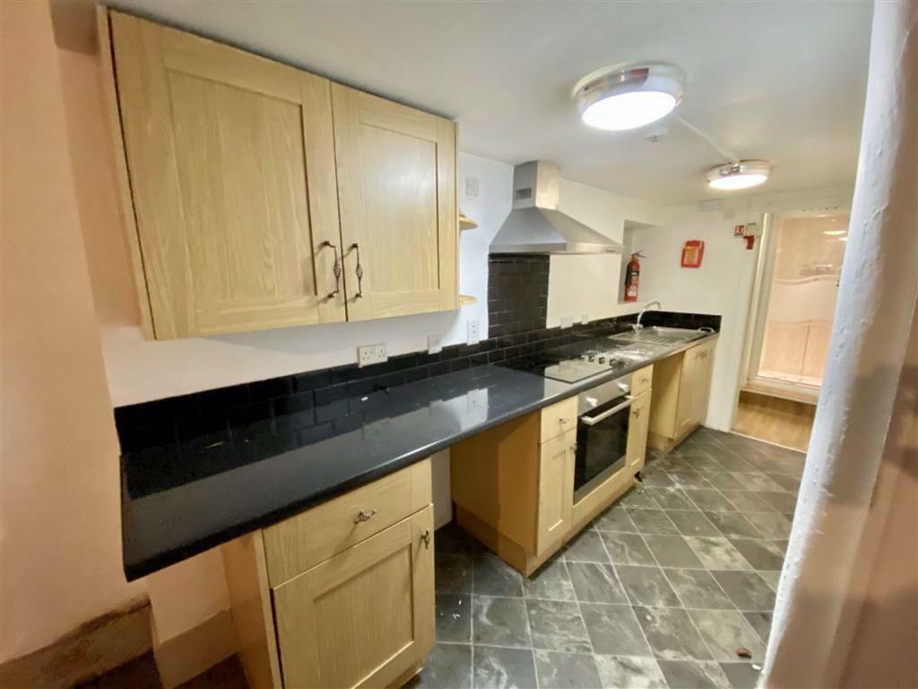 Kitchen: - 3.1 x 2.4 (10'2" x 7'10") - Fitted base and wall cupboard; single drainer sink; built-in oven; four plate ceramic hob and filter extractor above; small side window.
