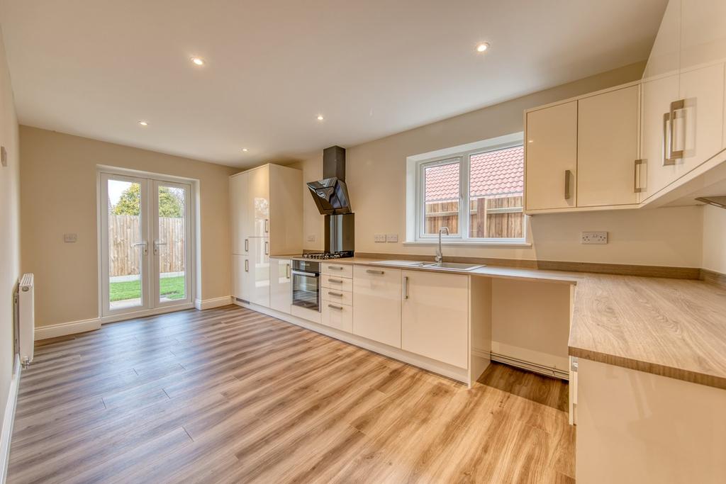 17' 6" x 9' 3" (5.33m x 2.82m) With French doors to garden, window to rear, luxury vinyl flooring, radiator, contemporary fitted kitchen with worktops over, inset sink and drainer, inset gas hob, integrated dishwasher, integrated fridge/freezer, space for washing machine, matching eye level units, extractor.